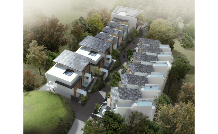 本基地位於宜蘭三星山頂,群山環抱,並可遠眺龜山島,亦是臺灣第一個大尺度的resort hotel規劃設計案。基地上依循土地肌理配寘旅舘棟、會館棟、湯屋棟及villa群組。在多層次的室外環境與室內序列對應操作,以及臺灣原質資料運行中,企圖尋找旅行中屬於臺灣的風情與味道,一點一滴安排旅人在空間、環境、緣海、繁星中安歇的角落。