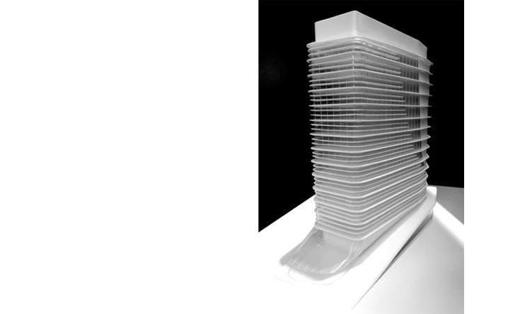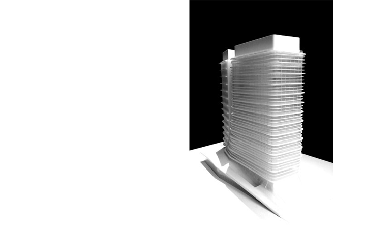 基地位於上海徐家匯交通繁忙的都市精華地段,同時也是氣象局大樓。本設計透過對於熱帶氣旋的擬態,將大樓隱喻為風暴的寧靜覈心,借由立面序列擾動、阻擾外界的都市紛雜,並透過都市地景的連續性區分出新的都市開放空間而保存底層商業的完成性。