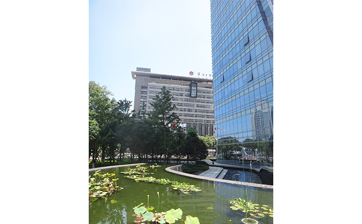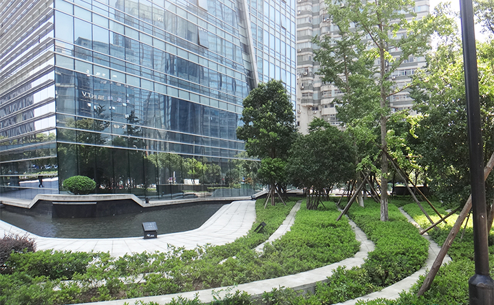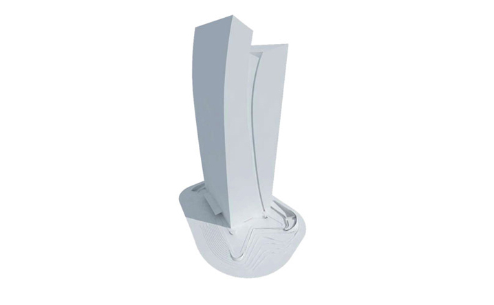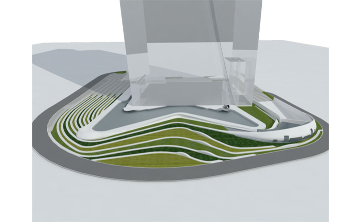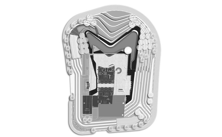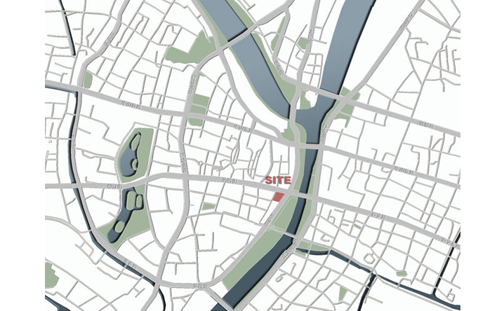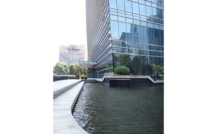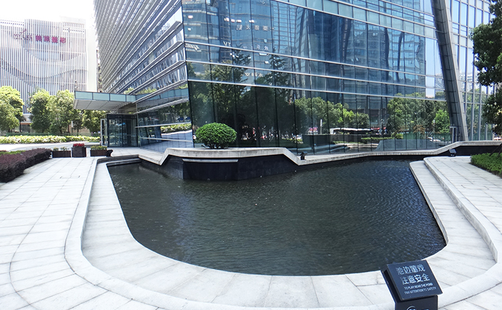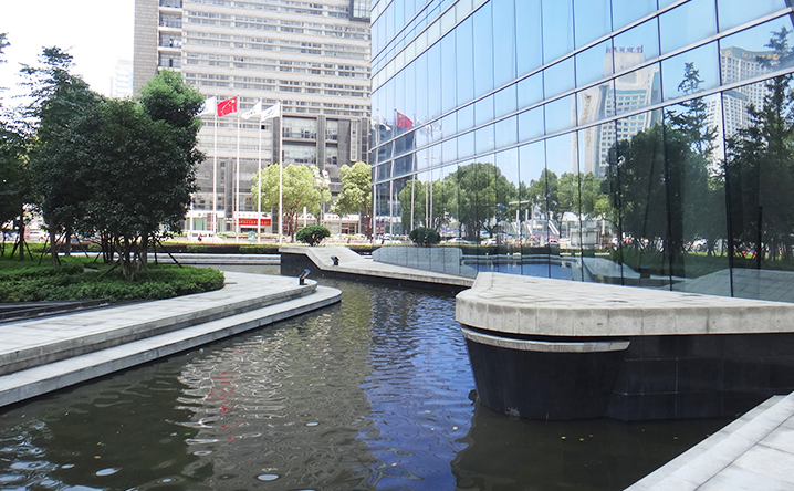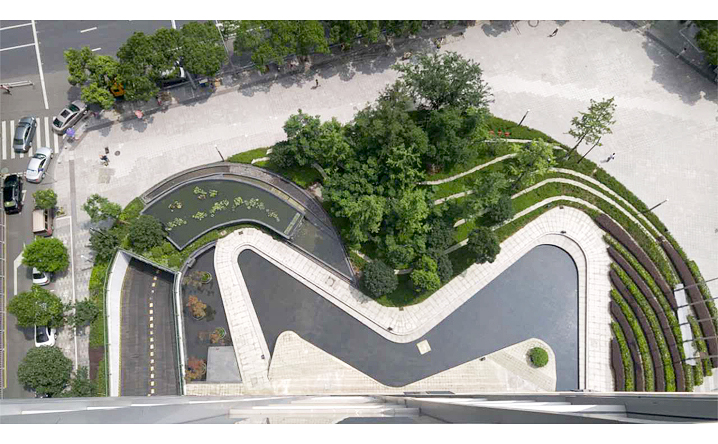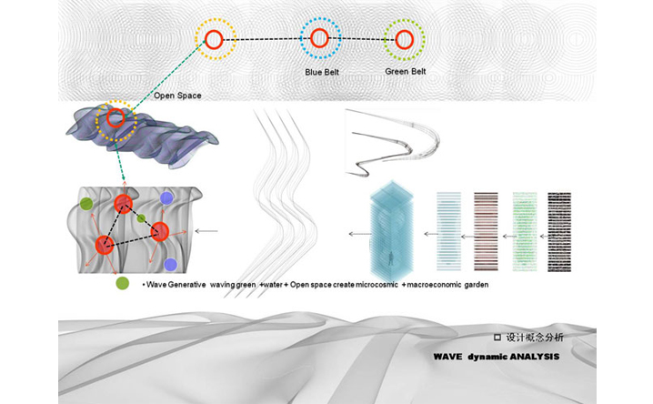 基地位於寧波都市發展的重要區域,藥行街,靈橋,三江匯流處,為都市開放空間中綠帶與藍帶軸線的覈心交界。除了生態廊道串聯,亦是都市人文地景的交匯結點。本設計以“波”為概念,將藍、綠帶的波動,透過基地上流動的“景石”相互編制著曲水、流瀑,導引出地景中人的移動路徑。在每一步、每一轉折和室內門廳中互相的動態借景、框景過程中,演繹出當代庭園風景,並為群眾使用的幼稚開放空間,一併提升寧波整體都市意象。