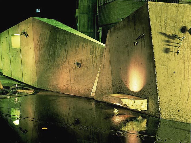 于台北木栅老舅的社区环境中,基地景观操作,不仅仅是美化或是虚假的销售说词。透过真实的环境了解,于外:清水交错的造型围墙将外周老旧参差的洗石外墙公寓,平和邮寄的协调入境;于内:透过铺面线型的排水沟线与水面,企图在狭窄基地中,处理视觉修正,将庞大建筑体量与边界的清水墙间撑展开来,并御用临建筑的水面倒影,柔化行径中人与恐惧的氛围。