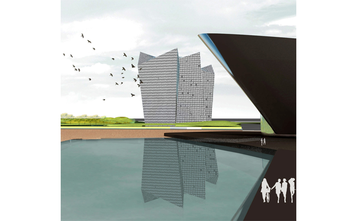 此案位於上海市金山區火車站周邊都市核心,從站體的垂直綠化建築設計到站區外內海的都市設計和外海變相互呼應,並借由車道地下化保留完整的都市開放空間,和不同高度層次的住宅類型規劃,以及連續的商業街區將遊客引導到海邊的人造沙灘和重新填海造陸的海上五星度假酒店旅遊區。我們透過新都市意象的操作,重新將金山區定義為一個旅遊都市。