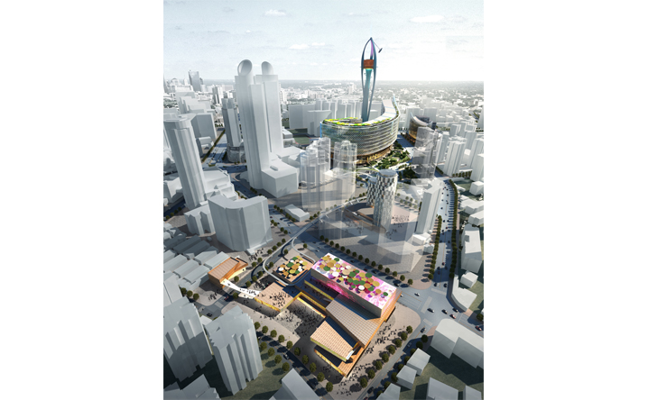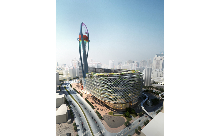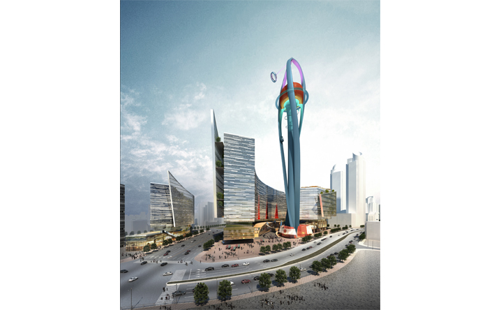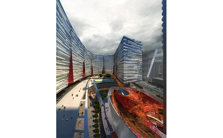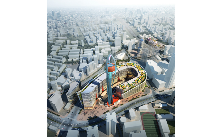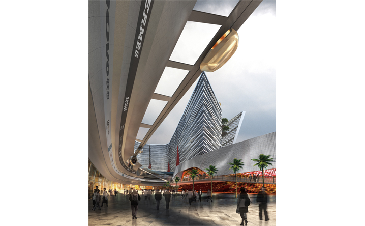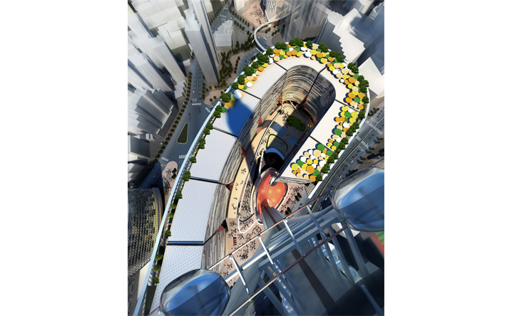 基地鄰接上海徐匯區的繁華核心港滙廣場,在徐嘉匯中心的規劃設計中,我們透過垂直娛樂塔(VTP)與纜車系統植入,結合地面層商業內外街以及商場頂部的都市綠洲創造嶄新立體式、不同速度感的商業遊逛體驗,同時形塑徐家匯新地標與天際線。一樓開放式的商業佈局與周邊現有的商業點做平行與立體連結,同時藉由纜車系統創造新的都市人流立體串連。而在辦公立面規劃設計中利用垂直農場的管道,打造可持續性之綠色建築,將綠意還給都市,結合北向景觀森林的規劃,開放城市綠地、產生新的呼吸、舒緩生活節奏。