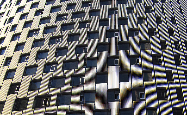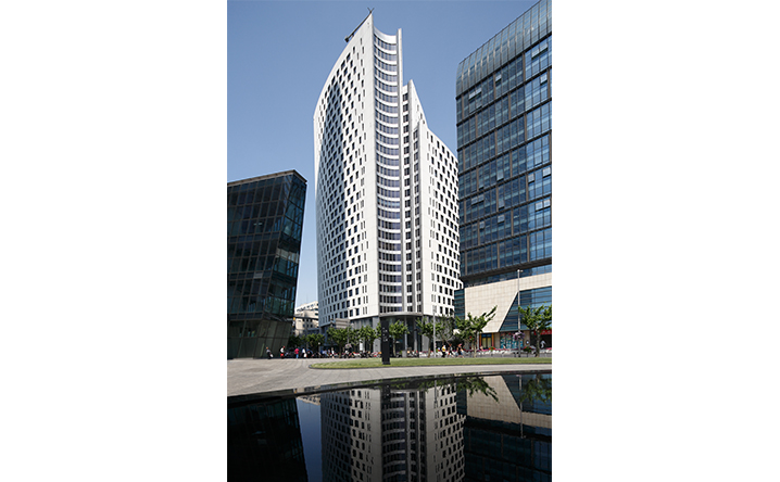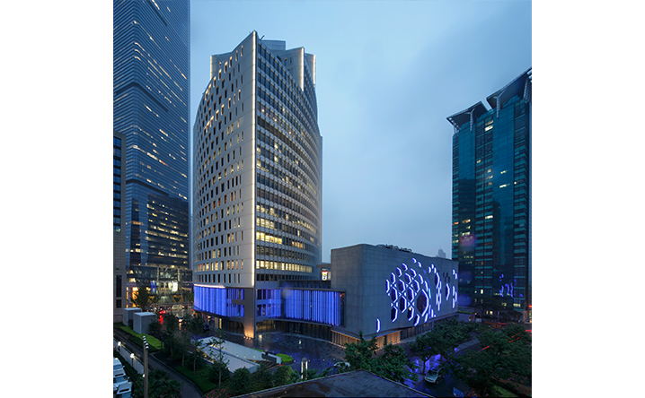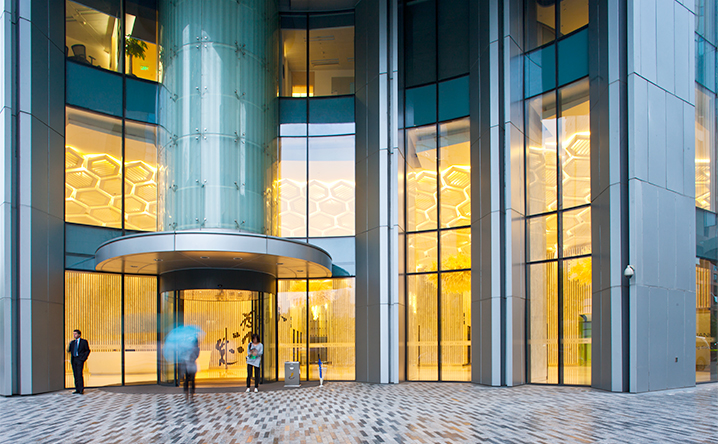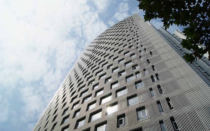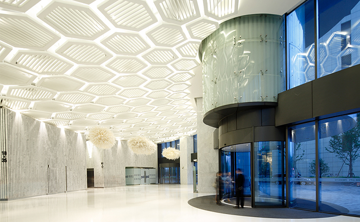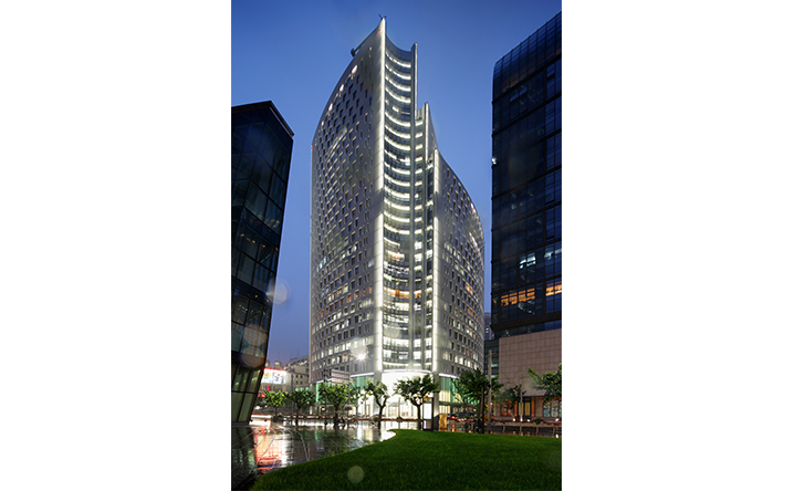主樓裡面透過遮陽格栅和大窗系統的重新設計,滿足更多的節能需求,並賦予室內空間在開窗的安排上形成節比麟次的節奏。本大樓亦取得美國LEED金級綠建築認證。