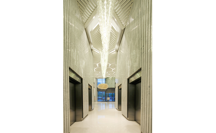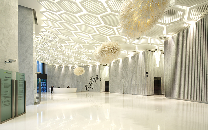 室內大廳除了延續中國山水的流動概念外,並透過書法書寫的動態去强化空間中流動性與藝術文化的性格。
