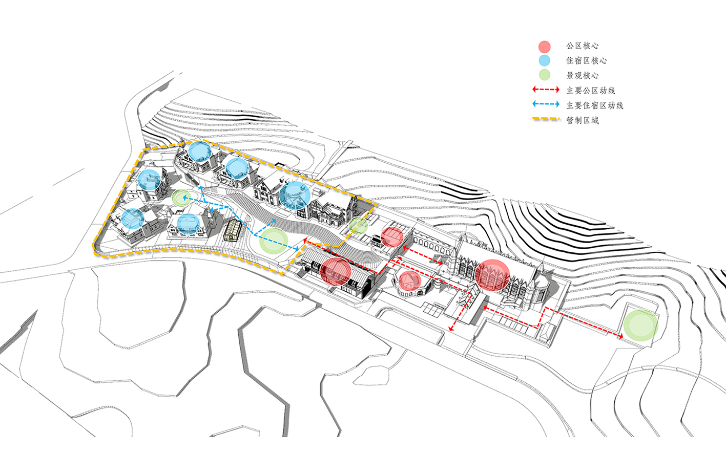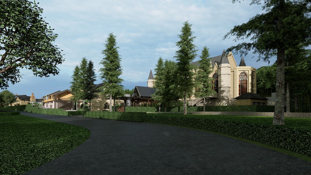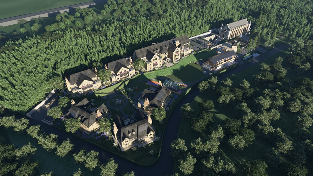 在滿布竹林等綠植的密境,融合西式古典空間元素及材料,利用原有高地自然地貌,創造出充滿自然趣味奇幻的空間,打造一個涵蓋娛樂、旅遊的大自然營地,塑造成白茶小鎮的新地標。