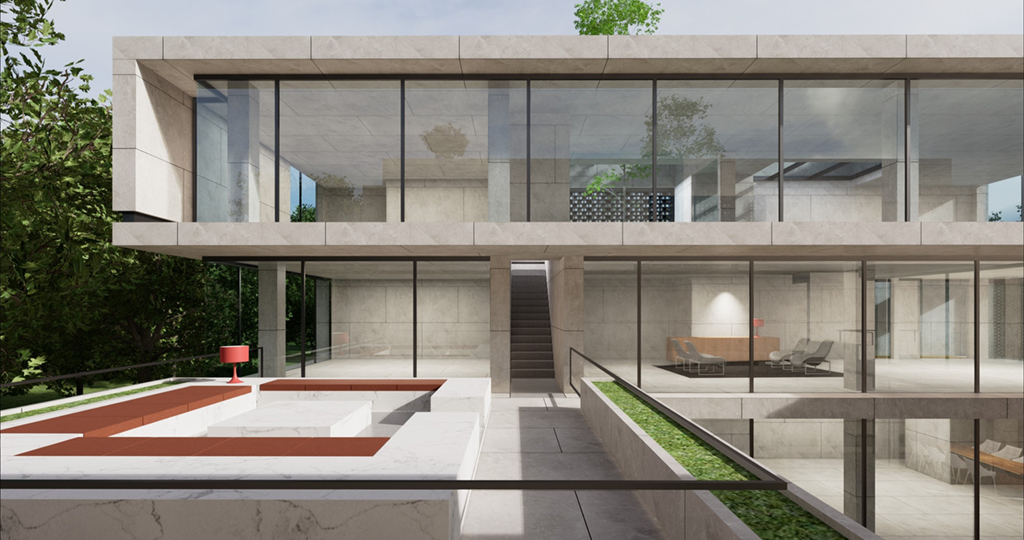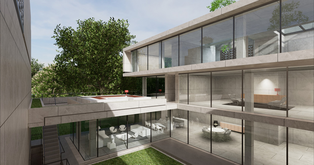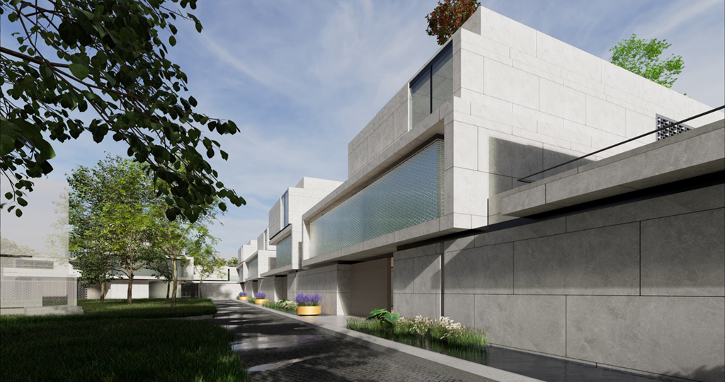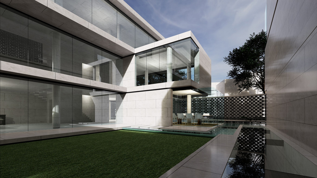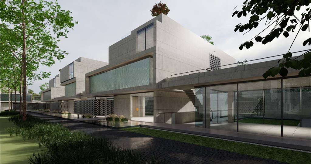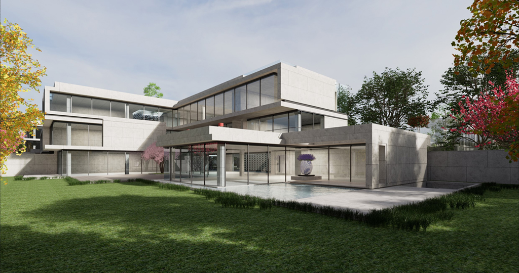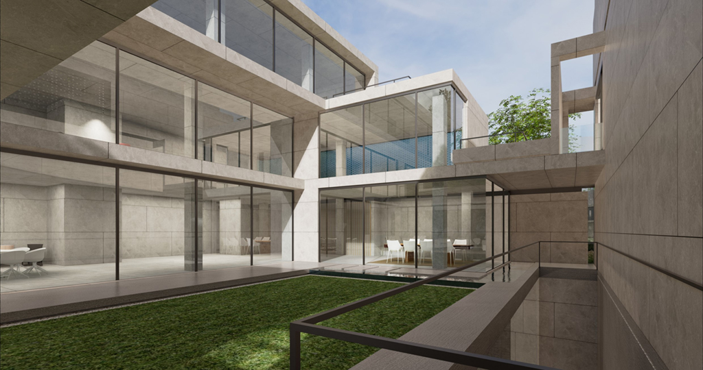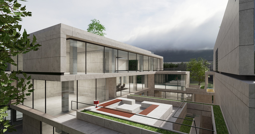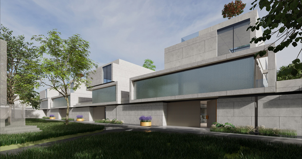 受現代繪畫大師陳其寬的畫作啟發,將原本平面的中國園林布局立體化排佈,透過垂直動線遊徑將一樓入室中庭,二樓居室庭園以及屋頂花園完整串聯起來,注入移步換景趣味性外,企圖能在不同現代的居室生活場景中融入中國山水的恬適情懷,更是在繁忙的都市生活中,對現代桃花源下一個全新註解。